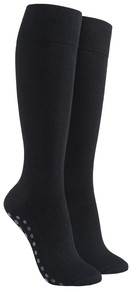 Svarta kompressionsstrumpor / stödstrumpor med halkskydd som ger fötterna bättre grepp.